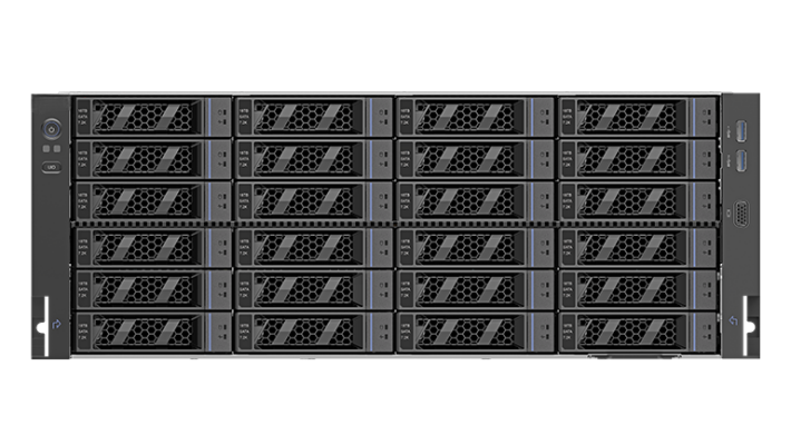 | Storage | Up to 24*3.5″ drives (16*NVMe compatible)Internal: 2*SATA/PCIe M.2 |